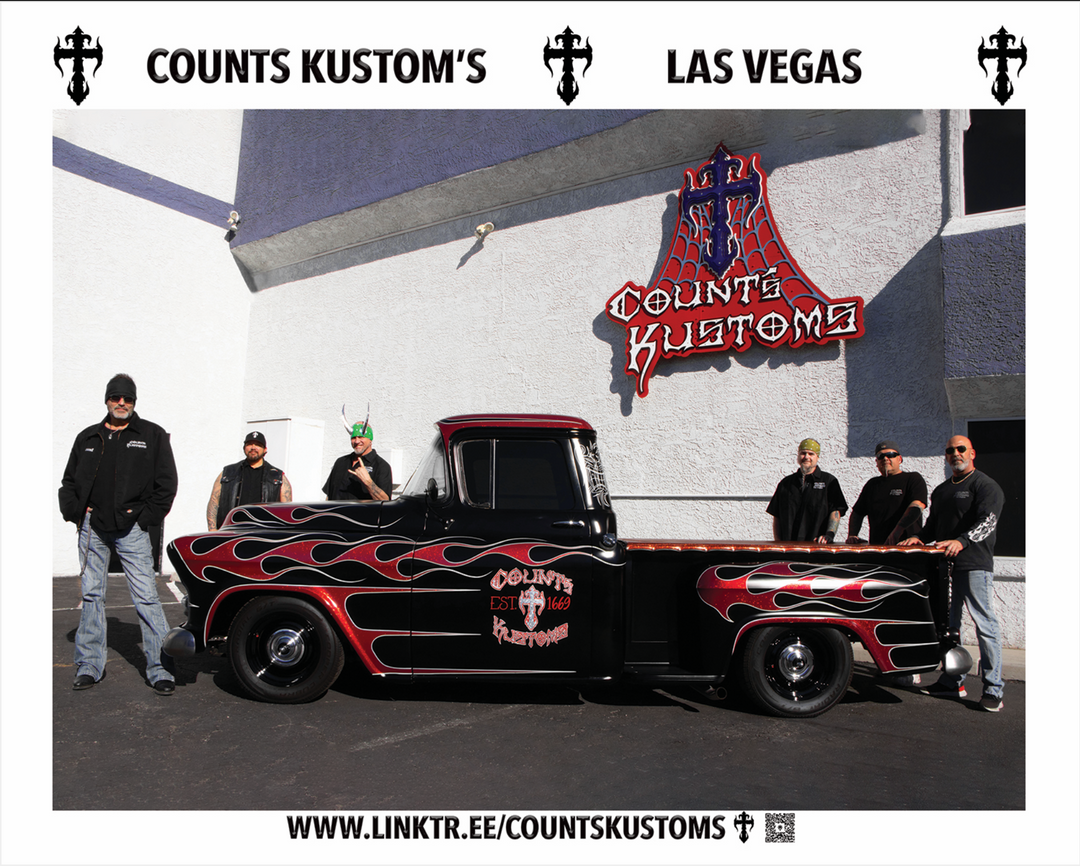 The Count's Kustoms team, led by Danny "The Count" Koker, is a crew of master builders and artists who bring custom cars, bikes, and more to life. Celebrate their creativity and craftsmanship with our exclusive apparel and accessories!
